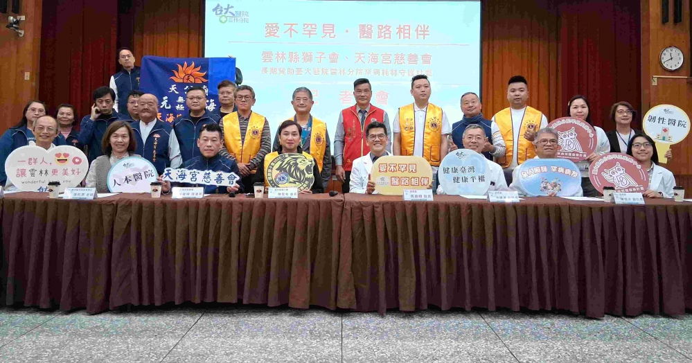 【記者陳信利/雲林報導】臺大醫院雲林分院今天(29日)舉辦「愛不罕見・醫路相伴─罕見疾病中心醫療耗材守護計畫」捐贈記者會,由雲林縣獅子會會長陳昱兆及天海宮慈善會理事長林建瑋代表兩單位宣布,將長期贊助該院罕見疾病中心,協助無法獲得政府補助、卻長期承擔高額醫療耗材費用的罕病病友,補上制度照顧不到的關鍵缺口。