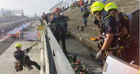 消防局指出,賽事內容設計高度貼近實際救災場景,首日即以極限體能測驗作為開場,隨後進入高空作業、複雜地形通過及多重情境模擬等關卡,全面考驗隊員的體能、技術、判斷力與心理韌性。在長時間高張力操作下,肌肉疲勞與精神壓力不斷累積,但災害現場從不給予任何喘息空間,每次操作都攸關團隊安全與任務成敗。