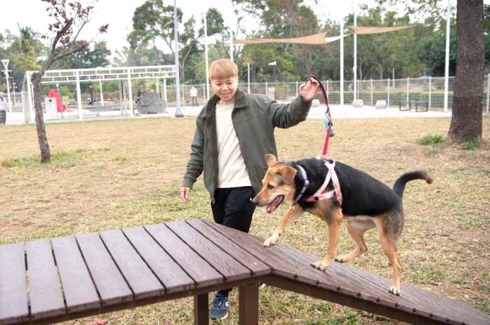 今天帶著家中「毛孩子」一同參與活動的吳小姐說,寵物公園將大小型犬分開,善用地形變化、設施讓狗狗可以自在探索、嬉戲,對設置寵物公園用心相當肯定。