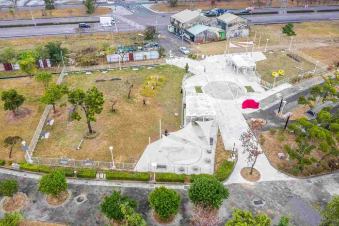 第三支箭,則是樂齡健康訓練場,專為高齡長者量身設計,結合運動、休憩與健康促進課程;第四支箭,針對青少年族群,透過極限運動場遮蔭改善工程,提升使用安全與舒適度;第五支箭,則是設置蒲添生運動系列雕塑,將藝術融入公園空間。