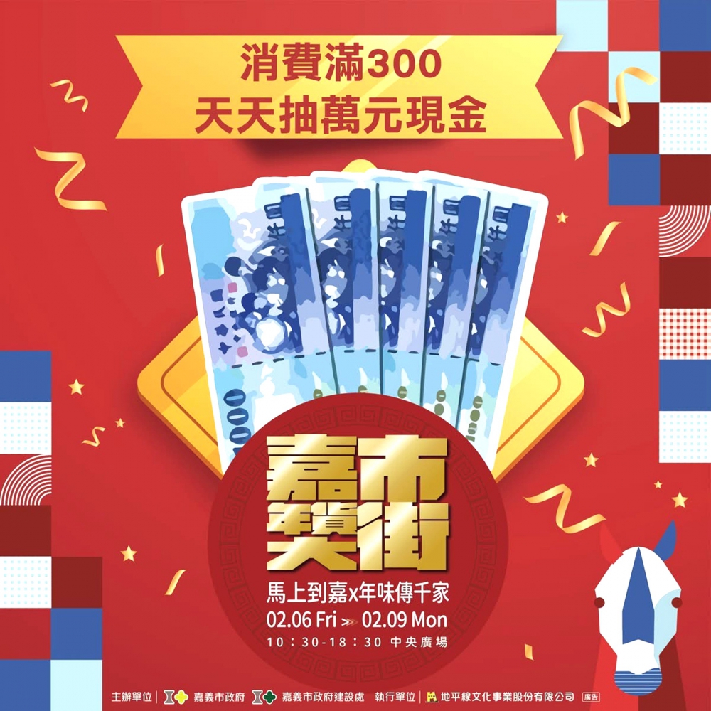 開幕首日將推出加碼抽出千元紅包等活動,活動期間還有「好禮五重送」,嘉義市政府歡迎民眾來「嘉」採買年貨,把澎湃實惠年貨帶回家。
