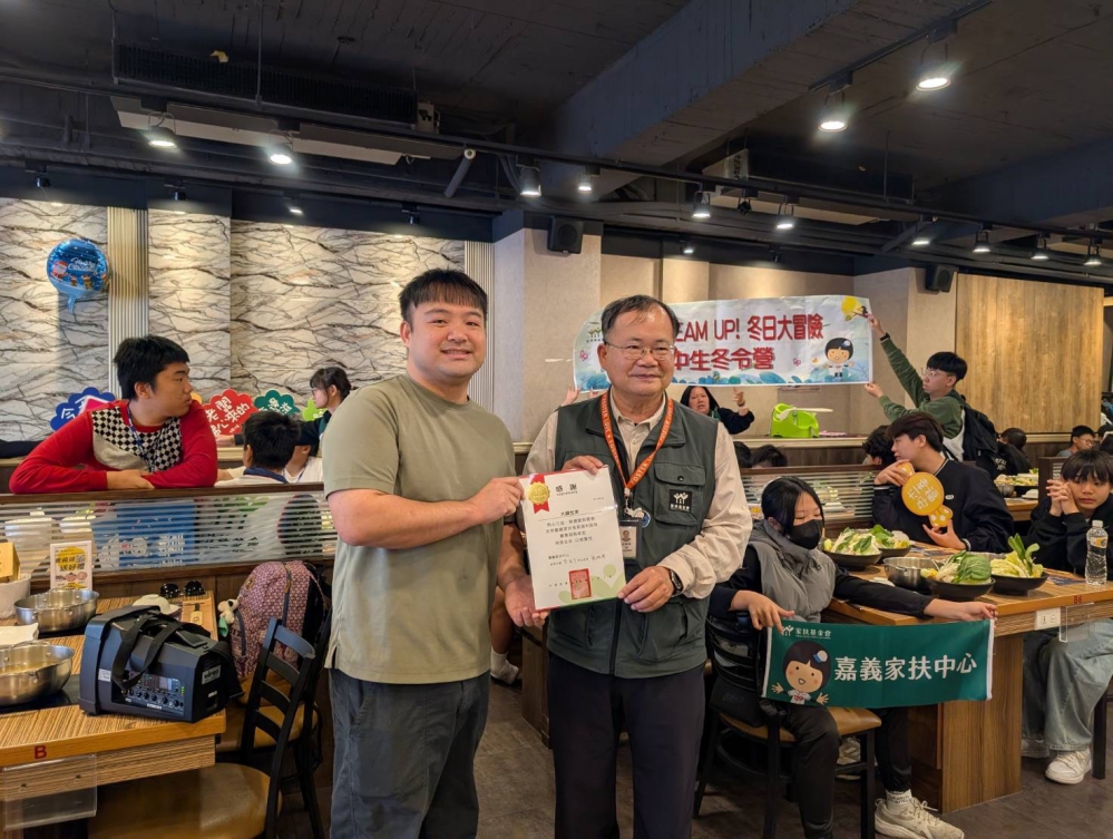 【記者張文一嘉義報導】嘉義家扶國中生冬令營40名青少年,二日享用由火鍋世家老闆鄭加成提供免費美味又暖心的火鍋,青少年們圍坐在冒著熱氣的火鍋旁,一邊品嘗香濃美味,一邊回憶過去幾天的挑戰與歡笑,從團隊合作的各項任務,到生活自理與溝通練習,每一刻都充滿成長與感動,在暖暖火鍋的陪伴下,這份青澀又充滿力量的回憶更加溫馨難忘。