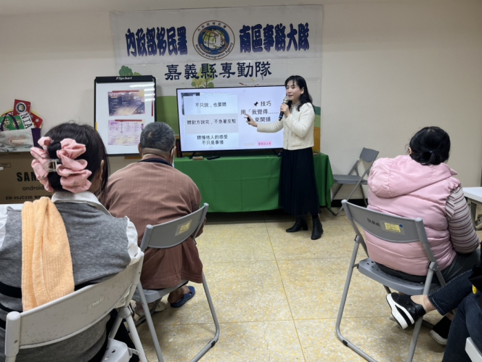 為了迎接農曆新年的到來,潘羽姍特別在課程中安排手作紅包燈籠,只要利用六個紅包袋及釘書機等簡單的工具,就可以製作年節燈籠。紅包象徵祝福與喜氣,製作成燈籠不僅環保,也可以傳遞傳統年味,讓節慶文化以創新的形式延續。年關將近,嘉義縣服務站也把握機會進行反詐騙宣導,提醒民眾留意近年常見的假投資、假賣貨便及人頭帳戶等詐騙手法,呼籲面對來路不明的電話、簡訊或網路訊息時,務必提高警覺,守護自身財產安全。