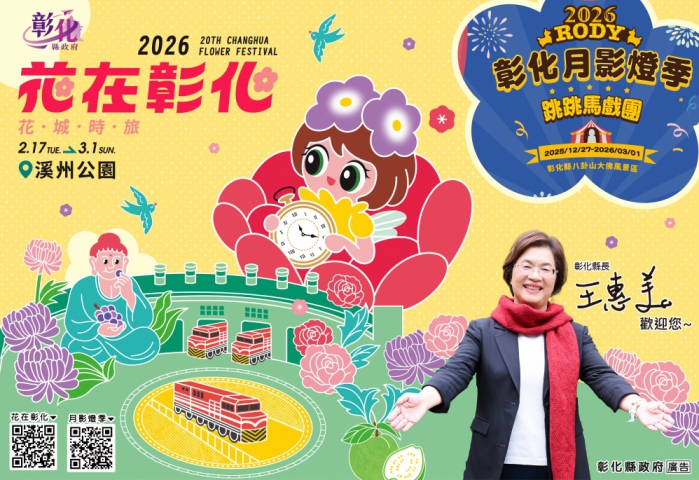 王縣長表示,二十年來﹁花在彰化﹂從一場地方賞花活動走到今天,已成全台走春第一品牌,為眾多家庭每年新春幸福記憶,今年的花城時旅,將二十年情感、記憶和想像融入其中,整合主題花展、生活花藝、多元展演、特色市集、園藝療育、可食地景、多肉溫室、食農教育和動物認養,打造結合文化、觀光、產業與生活美學的花卉盛會,讓過年走春不只是賞花,更是一趟仔細品味的深度之旅。