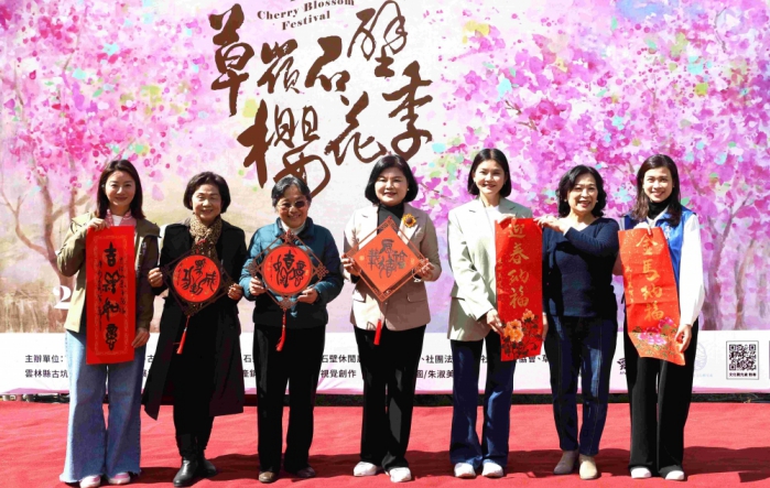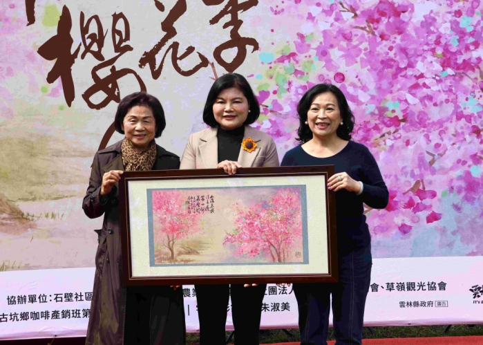 文化觀光處長謝明璇表示,今年櫻花季主視覺別具人文氣息,特別邀請雲林縣知名書畫家朱淑美與書法家盧彩霞兩位老師攜手創作。