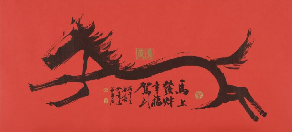 國學作家葉國居 馬年新春賀聯 馬上發財 如意 幸福駕(加 )到 深深獲得市民 收藏家青睞