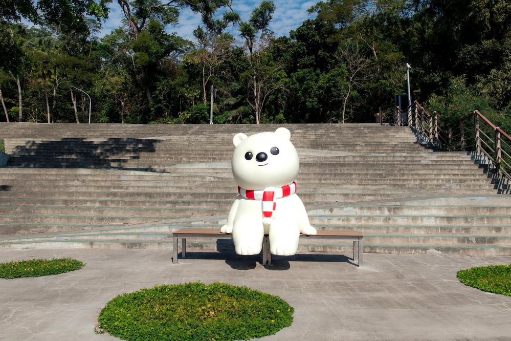 可愛療癒的大白熊靜靜坐在湖畔,與整備完成的步道及開闊湖景相互呼應,無論是親子同行、情侶約會或好友出遊,都能輕鬆拍出充滿年味的紀念照片。
