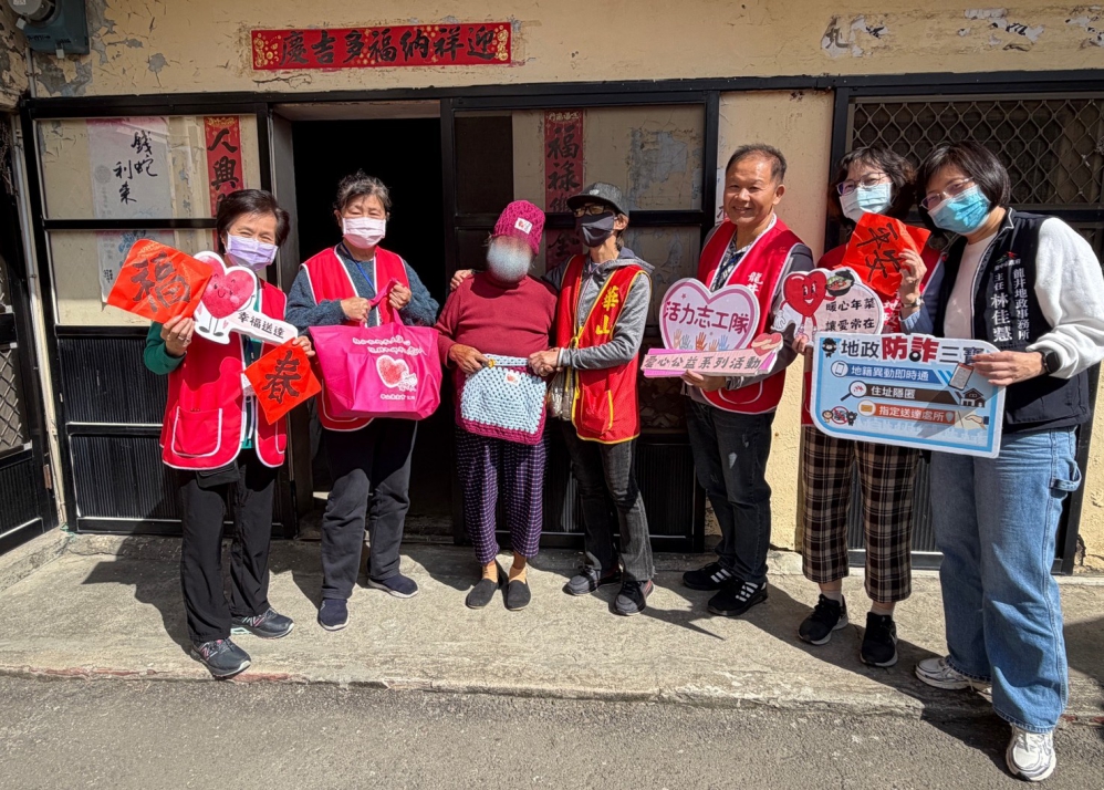 (特派員陳宏昇/龍井報導)農曆春節將至,為關懷在地弱勢長輩並提升防詐意識,龍井地政事務所率領活力志工隊參與華山基金會龍井愛心天使站的送年菜活動,透過捐助年菜的公益行動,為弱勢長輩送上年節溫暖,並於志工親送年菜的過程中,同步進行不動產防詐宣導,落實關懷生活與守護財產安全的雙重目標。