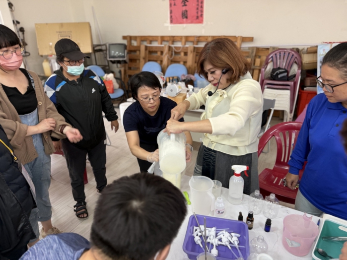 嘉大師範學院陳明聰院長表示,延續去年綠美化盆栽活動的良好回饋,今年以在地植物栽培與永續應用為核心,透過手工皂與洗髮精製作,將環境教育與自我照顧自然融入居民生活,展現大學以專業陪伴社區、與居民共同學習與成長的實踐方式。