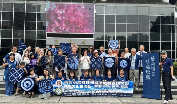 長年投入藍染推廣的志工隊副隊長吳典玲分享,在一次次教學與交流中,深刻感受到工藝連結人心的力量,藉由一塊藍布成為跨文化的共同語言,讓國際訪客理解台灣文化的細膩與溫度。隊長朱存琦表示,志工隊多年來持續精進技藝與教學能力,培育出多位專業藍染講師,不僅拓展志工的藝術職涯,也為台中培養穩定的文化人才庫,展現市府推動文化永續發展的具體成果。