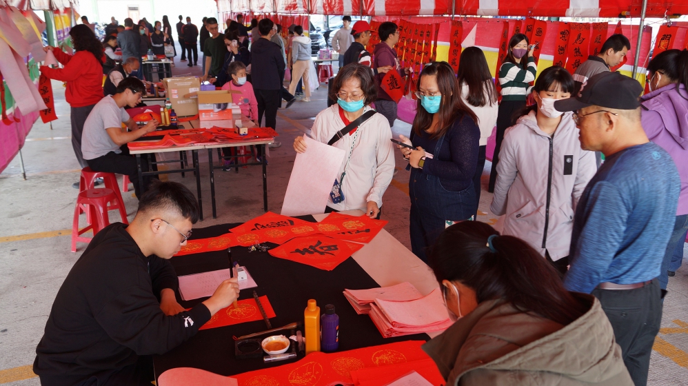 許多民眾一早便前往排隊等候。書法老師們專注揮筆,將新年祝福一筆一畫融入春聯之中,不同字體與風格各具特色,也讓前來索取春聯的鄉親在欣賞書法藝術之餘,更感受到傳統文化的魅力,活動現場氣氛熱絡。