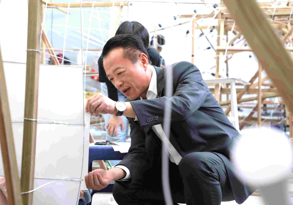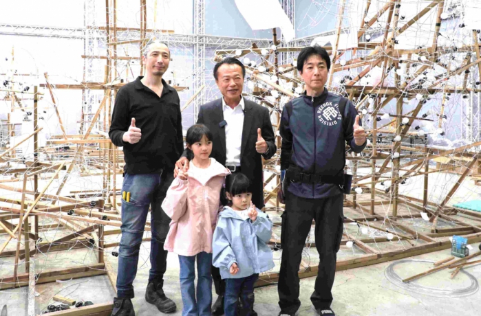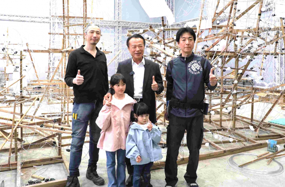 【雲嘉特派員陳信利/嘉義縣報導】2026台灣燈會邀請日本青森睡魔師團隊來台,工作人員在燈會現地製作巨型睡魔燈籠,3月7日將參與「Team Taiwan」大遊行,象徵台日深厚情誼,縣長翁章梁今天(7日)到「睡魔小屋」與小朋友們一同體驗睡魔燈籠製作過程。