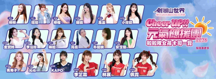 ◆女神應援團:春節後連再邀請安芝儇、林襄等15位超人氣啦啦隊女孩現身園區,為開學與開工前的遊客注入活力。