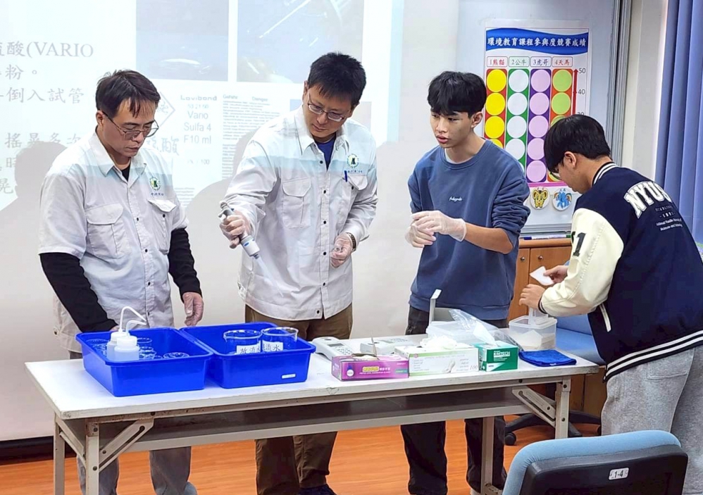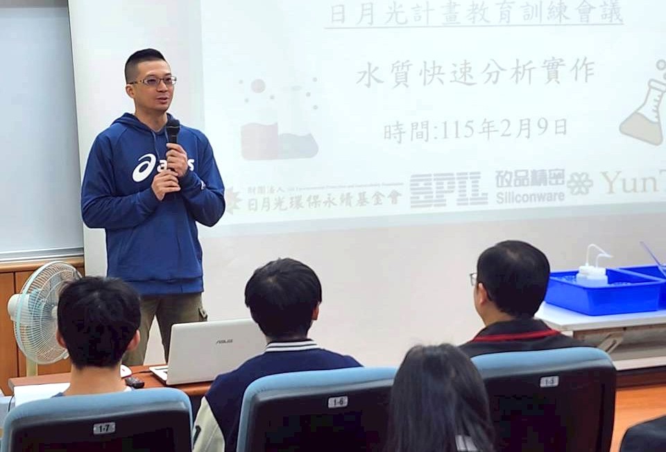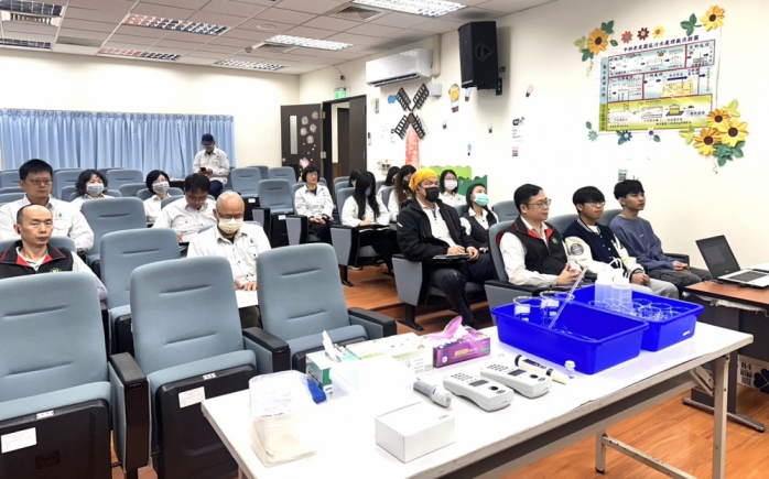 隨後進行水質理論與實作課程,由雲科大及環保團隊帶領志工從基礎認識出發,提升巡守與判識能力。課程中說明水質快速分析技巧,並特別說明河川影像拍攝實作。