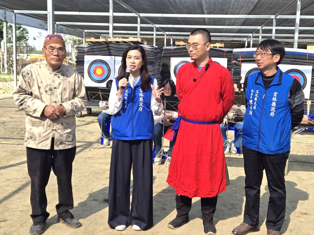 【記者陳信利/雲林報導】斗南鎮羊羊得藝教育農場今天(9日)舉辦雲林縣首座弓箭場啟用活動,弓箭教練陳宏曜結合知名陶藝家父親陳永礎,營造羊羊得藝教育農場賞陶藝、練弓箭優美環境。