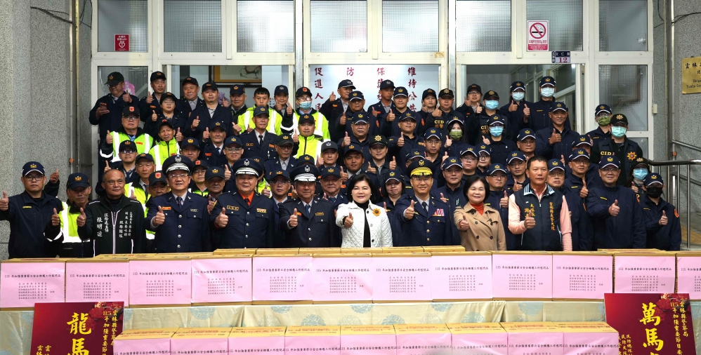 張縣長肯定警察同仁近年在反詐騙、反毒及肅槍等專案中的優異表現,成績屢獲全國肯定,展現雲林警政團隊的專業與用心。她並致贈慰勞品,感謝勤務人員辛勞付出,並祝福大家新的一年身體健康、工作順利。
