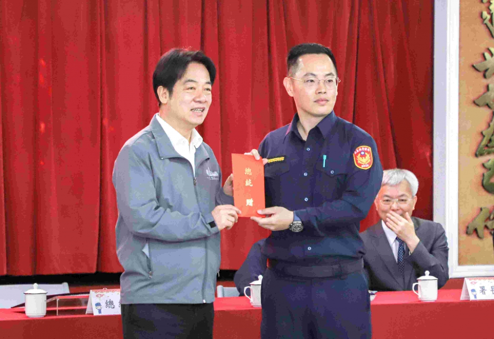 賴總統說,行政院長卓榮泰已核定警察同仁加油打氣最實際行動,調整警察人員警勤加給表,調高刑事加成及勤務繁重加成,如果立法院通過,3月1日就可以生效實施,全國警察同仁大約6萬人受惠。