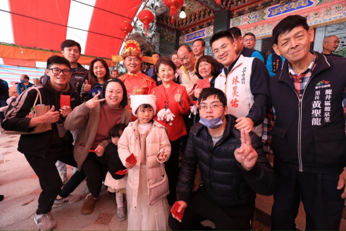(特派記者陳宏昇/臺中報導)喜迎金馬年!大年初一台中市長盧秀燕一早展開宮廟走春行程,接連前往大里區七將軍廟、西屯區永安宮、潭子區潭水亭及龍井區龍泉岩為市民參香祈福,並發送「馬到金來」小紅包分享新春喜氣。現場民眾大排長龍,甚至有民眾昨晚11點就來排隊,只為了搶得新春好彩頭。盧市長除了向市民拜年祝賀外,也向神明祈福許下三個心願:期盼國泰民安、市政昌隆、廟宇香火鼎盛,迎接福兆一整年。