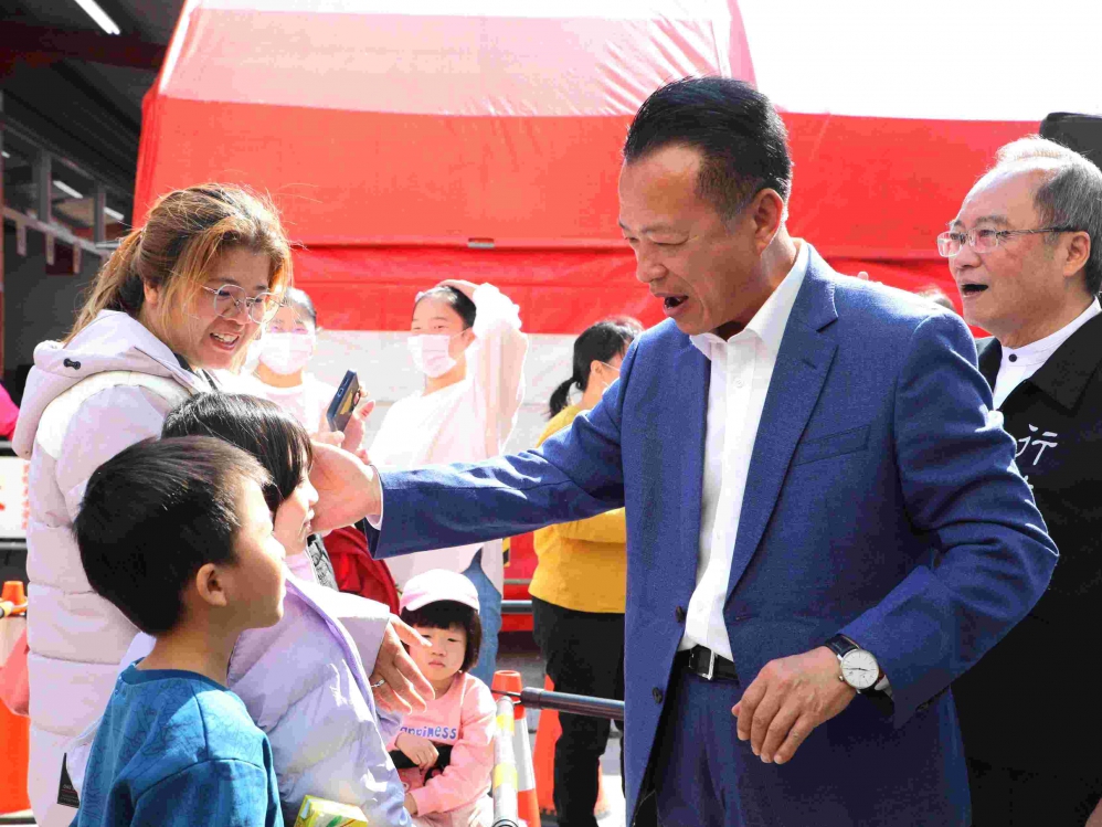 翁縣長在與民眾互動時,也不忘宣傳「2026台灣燈會」,邀請大家於3月3日至15日期間到場參觀,天天都有精彩的表演節目!(圖/縣政府提供)