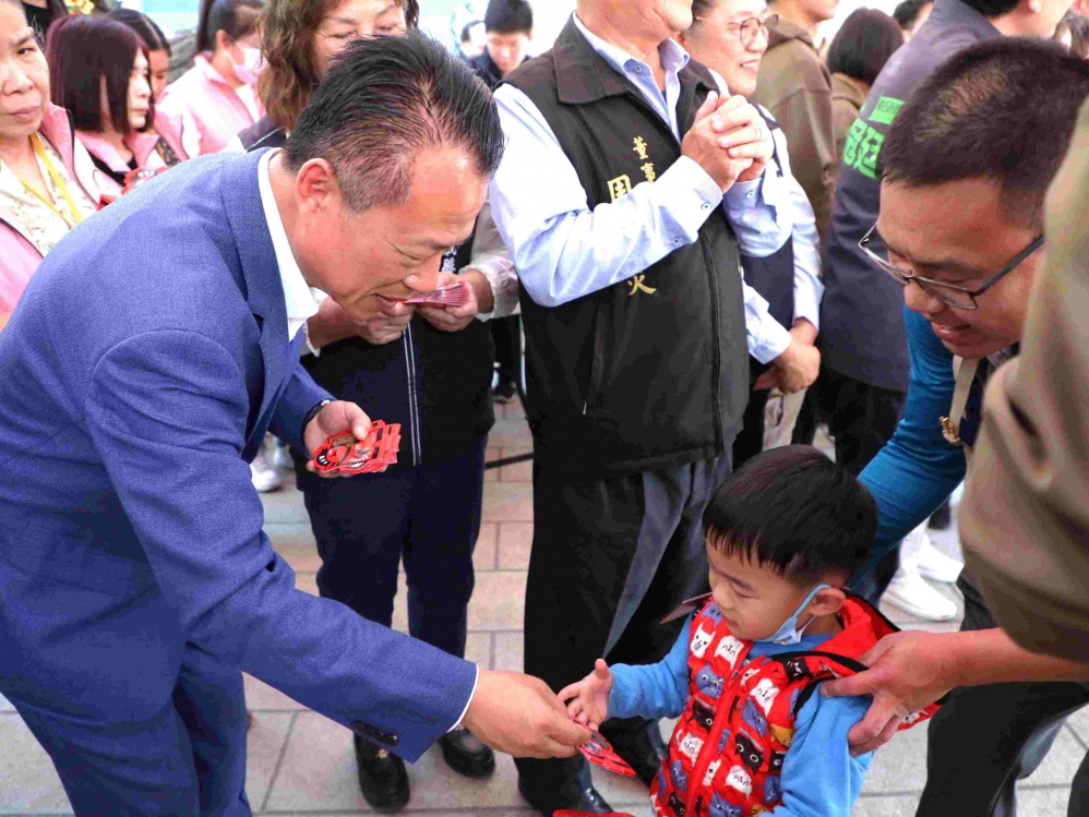 今天也是縣長翁章梁春節期間走訪各大廟宇,發放「福駒臨嘉」開運紅包的最後一天。