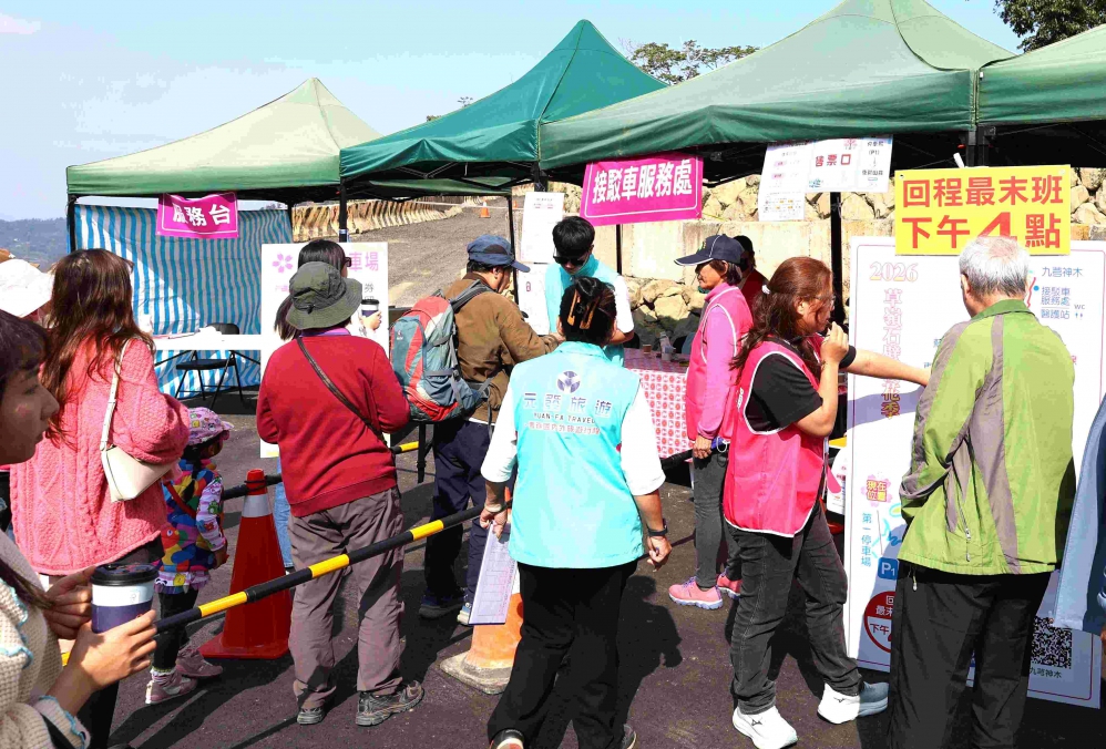 經過加強宣傳,多數旅客已知可從斗六火車站搭乘接駁車上山,抵達草嶺後再銜接小型接駁車,整體運作順暢,這幾天人潮雖多,但沿線交通未出現壅塞,已達到良好疏運效果。