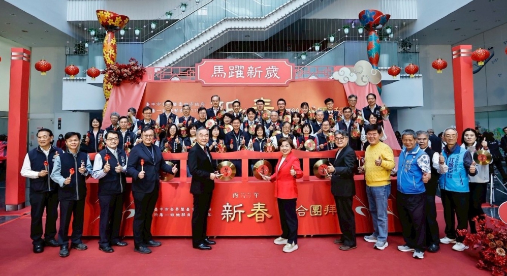 (特派員陳明/臺中報導)鑼響敲好運、市政向前行!台中市政府於今(23)日迎來開工首日,新春第一場大型活動創意齊發。台中市府聯合團拜以「駿馬奔新歲,攜手譜新章」為主軸,期許各項市政如同駿馬之勢,持續蓄勁前行。市長盧秀燕今日因故不克出席,特別委請副市長黃國榮代表向大家拜年,並代讀新春致詞,向所有市民道賀。