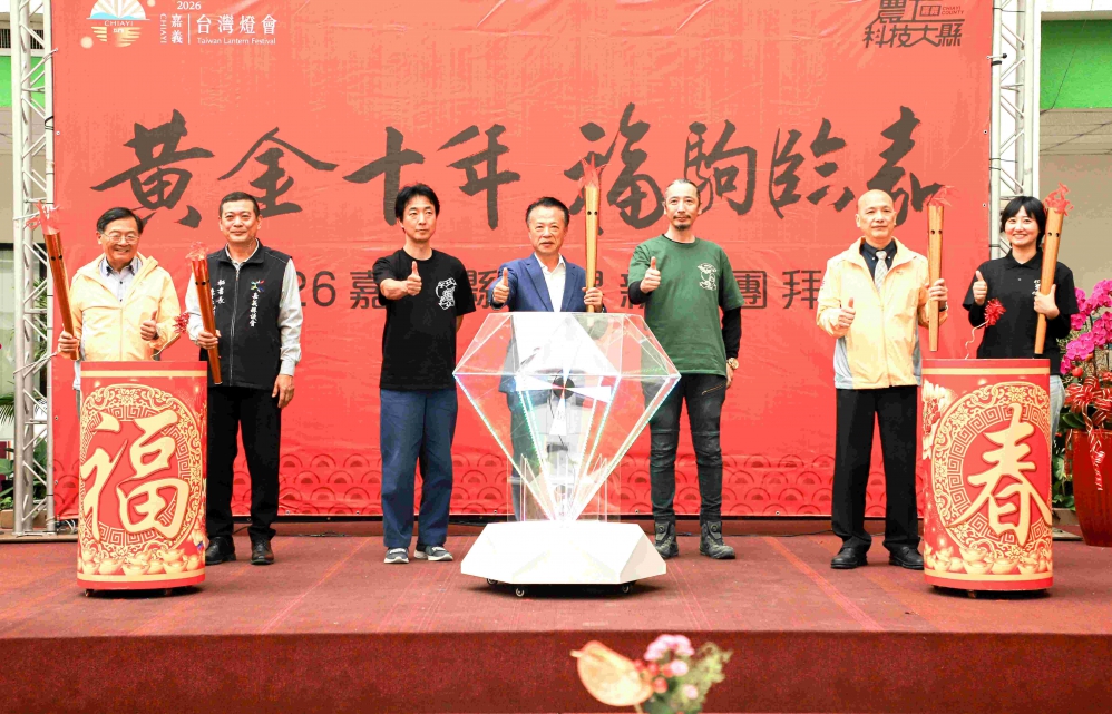 隨後縣長翁章梁與副縣長劉培東、李光耀秘書長率眾按下啟動儀式按鈕,隨著燈光亮起,象徵「嘉義燈會」即將到來,也宣告縣府團隊新年度正式開工。