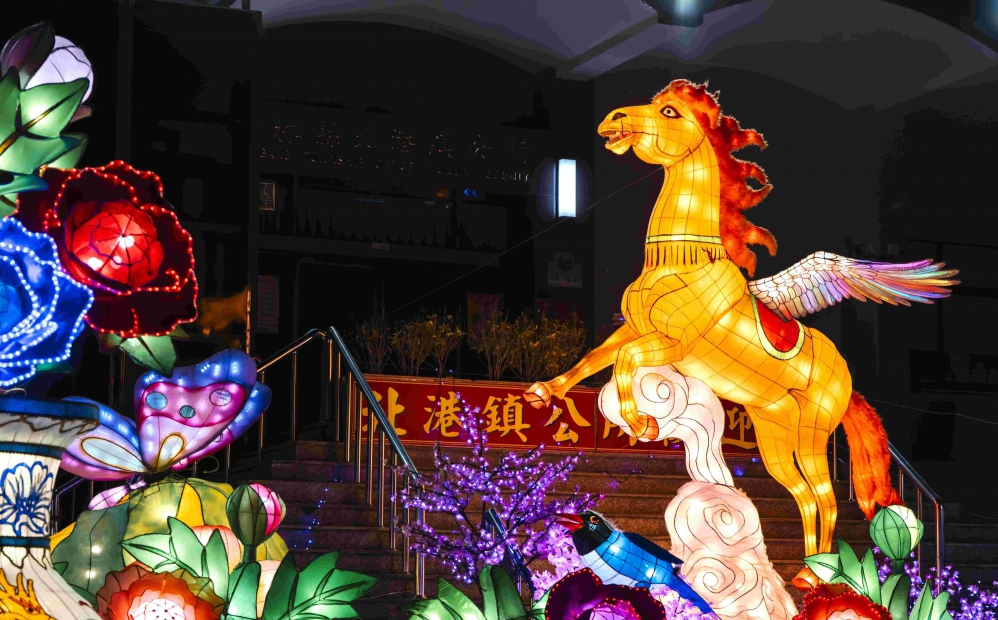 「北港文化中心燈區」,由台西藝術協會藝術家丁仁桐、吳炯韋、詹秋得共同創作,團隊長期以漂流木、蚵殼與海廢進行創作,嘗試在「被遺棄之物」中,重新找回人與海的連結,以白馬為核心,呼應馬年意象,卻不奔馳張揚,而是在等待與凝視中展現力量。