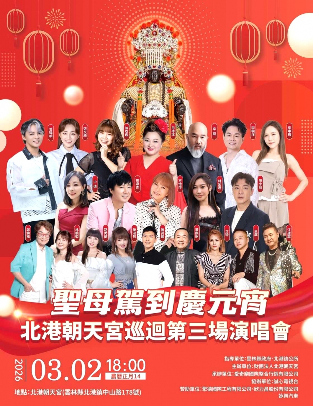 另財團法人笨港媽祖文教基金會於3月2日,舉辦「115年『駿馬呈祥慶元宵』千人提燈大型元宵踩街活動」,以及北港朝天宮於3月2日舉辦「聖母駕到慶元宵-北港朝天宮巡迴第三場演唱會」。