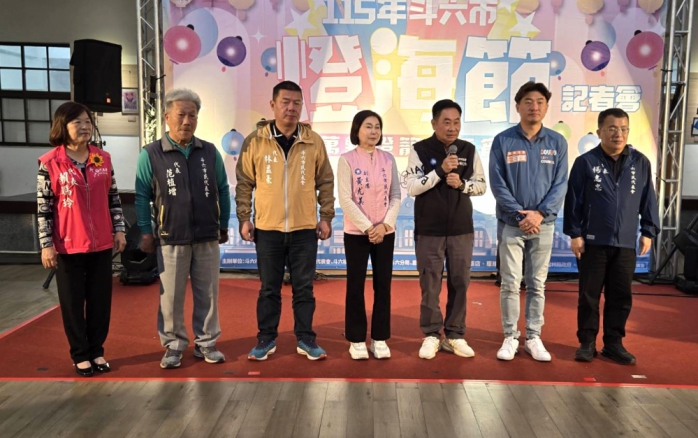 市公所今天(24日)在公所中庭舉辦宣傳記者會,縣長張麗善、斗六市長林聖爵、市民代表會主席胡克勤、副主席黃尤美及代表們、里長聯誼會會長曾景坐等里長及來賓們到場代言宣傳,並邀請知名歌手鼓鼓呂思緯出席獻唱,為115年燈海節揭開熱鬧序幕。