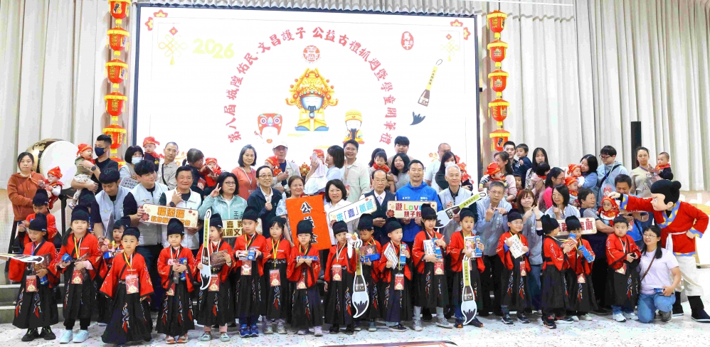 【雲嘉特派員陳信利/嘉義市報導】「第八屆「城隍佑民・文昌護子」公益古禮抓週暨第三屆學童開筆禮」,今天(1日)在嘉義市兒童福利服務中心溫馨舉行,共有40組家庭齊聚嘉義市參與,場面溫馨歡樂。