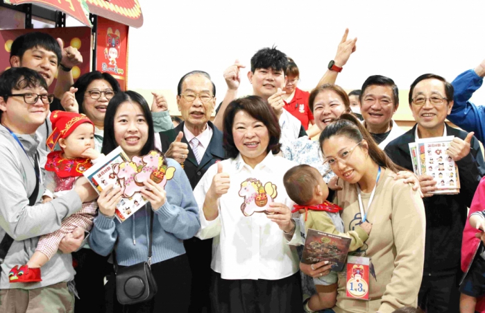 市長黃敏惠擔任啟蒙老師為孩子們點硃砂,並發送馬年限量的開運小紅包,祝福每位嘉義市的寶貝們「馬上平安、馬上幸福」!