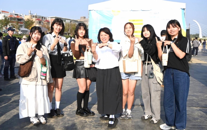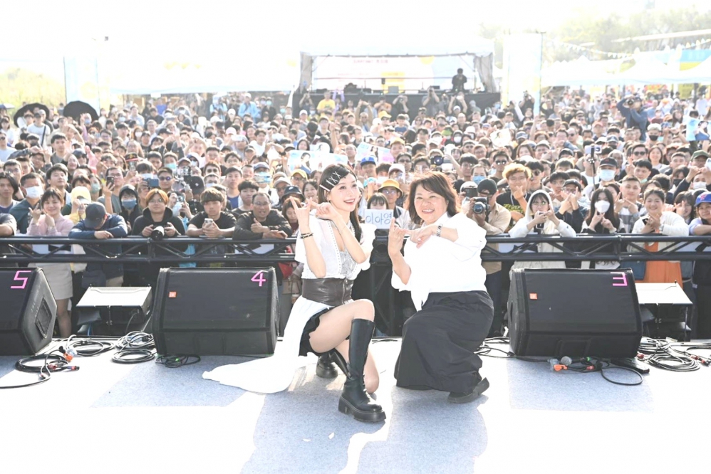 市長黃敏惠今天參與活動,感受春日踏青美好,並與來自韓國的啦啦隊女神李雅英同台,李雅英帶來招牌歌曲「哇塞」,贏得觀眾熱情回應。