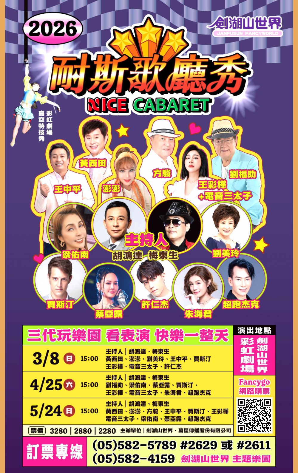 劍湖山世界為確保演出的精采度,《耐斯歌廳秀》將採取每月僅一場的超限量模式,且「場場陣容不同」,次次都有開箱驚喜!