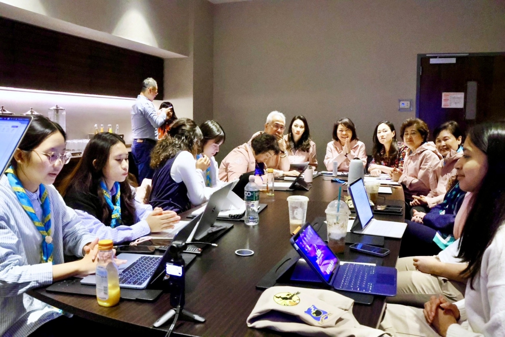 黃市長於美東時間10日晚間落地,隔日一早便出席女童軍論壇會議前彩排,為此行代表嘉義市參與活動的3位女童軍學子,與1位由中華民國女童軍總會推派的代表送上鼓勵,並與美國女童軍學生代表交流。