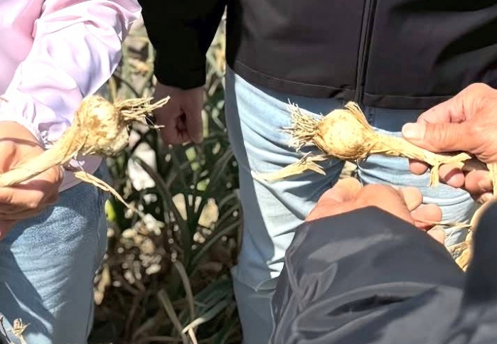 【記者陳信利/雲林報導】受到氣候異常與病蟲害雙重打擊,雲林縣土庫、褒忠等地蒜頭出現嚴重「結球瘦小」現象。立委張嘉郡、丁學忠今天(12日)會同農業相關單位人員前往土庫鎮實地會勘,呼籲農業部啟動補償機制。