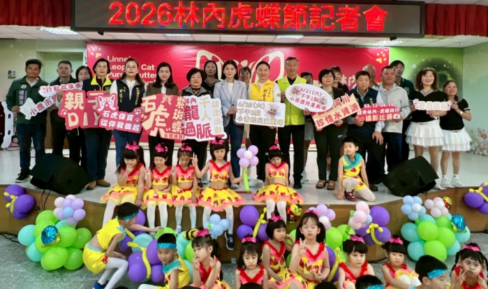 【記者陳信利/雲林報導】林內鄉公所及縣政府為推動生態保育理念、深化環境教育並展現雲林淺山生態之美,舉辦「2026林內虎蝶節」活動,今天(12日)舉行宣傳記者會,由林內鄉立幼兒園小朋友熱情舞蹈表演揭開序幕。