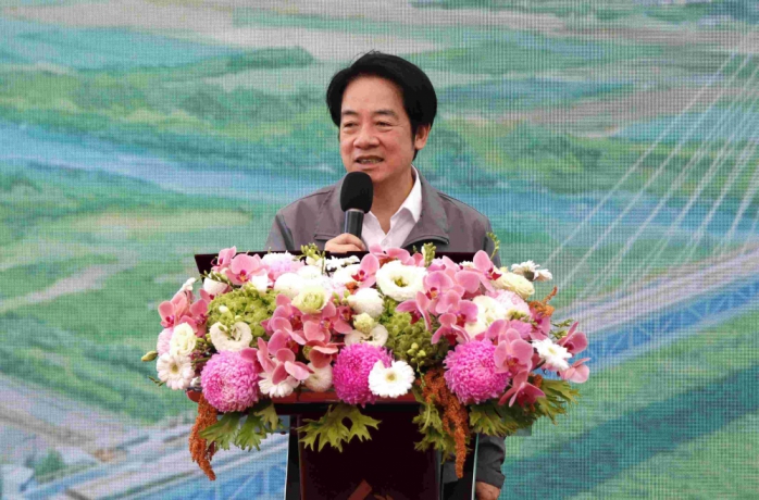 賴總統說,雲嘉南灌溉系統工程橫跨寬465公尺北港溪,工程原預估5年時間完工,在全力趕工下縮短至2年10月,並同步修復舊有圳道,也在大圳旁種樹、設置自行車道,相當難能可貴。