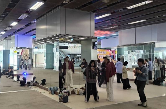 【記者陳信銘/高雄報導】台鐵與環球購物中心攜手,在全台最大火車站、高雄車站設置大片鏡面牆,邀年輕朋友來車站「練舞」,今正式對外開放,。