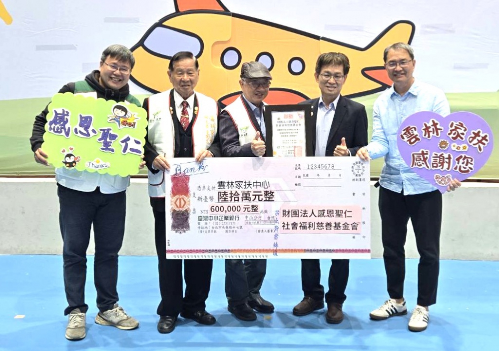 雲林家扶主委陳燦勲與副主委李萬吉特別謝謝感恩聖仁基金會捐助60萬、台灣期貨交易所、高清愿紀念慈母基金會、雲林縣肉品市場、嘉義市福添福基金會等熱心捐款助學,家扶特以「遨翔」為主題,讓學子認識不同升學方向,感謝社會各界關懷家扶學子教育需求。