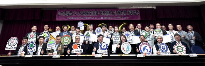 結盟儀式由虎科大校長張信良、台中精機董事長黃明和及中彰投分署長劉秀貞,與各校代表簽署,由教育端重構產業韌性,共同推動精密加工與智慧製造相關技術人才培育。