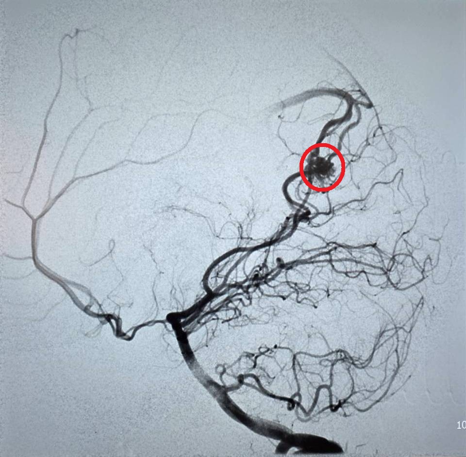 (特派員劉鳳瑩、陳明/苗栗報導)23歲的周小姐正值青春年華,日前卻在毫無預兆下感到一陣劇烈頭痛,隨即伴隨嚴重的頭暈與嘔吐感,家屬見狀趕緊將她送往大千綜合醫院急診。經腦部電腦斷層掃描,醫師赫然發現其左側腦部有出血跡象,且出血位置極其不尋常。醫療團隊隨即展開精密檢查,證實為罕見的「顱內動靜脈畸形」引發出血。所幸在神經放射科康靜維醫師及時進行微創血管內栓塞治療後,順利止住出血,病人症狀明顯改善,成功化解一場腦內危機。