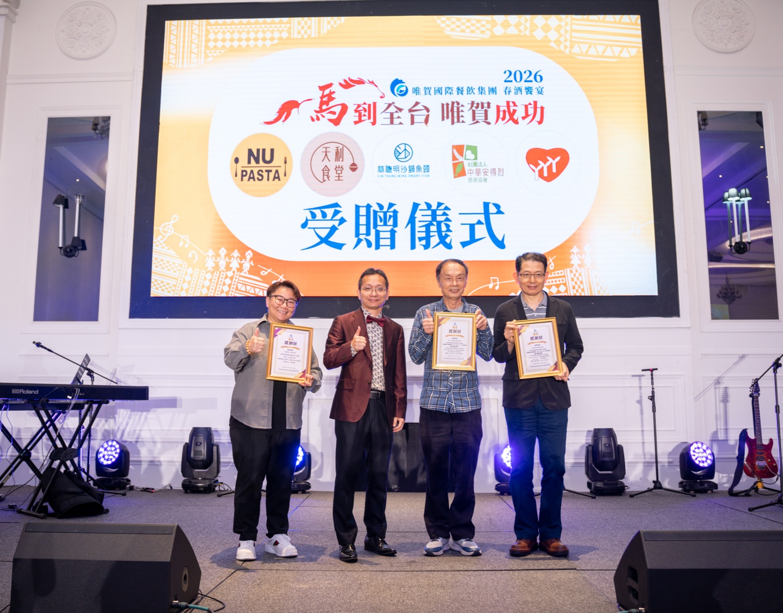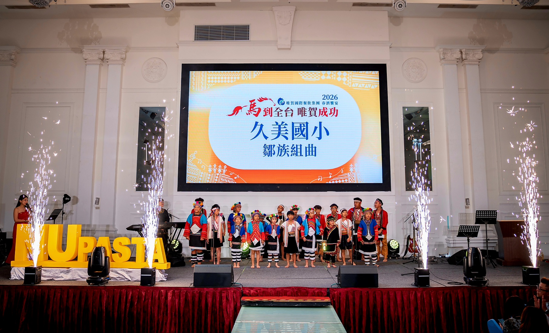 在悠揚純淨的原住民孩童歌聲中,唯賀國際餐飲集團2026年春酒活動於溫馨氛圍中登場,為年度盛會揭開序幕。今年春酒不僅是慶祝企業成果的場合,更轉化為一場充滿溫度的公益行動,展現企業回饋社會的深厚承諾。