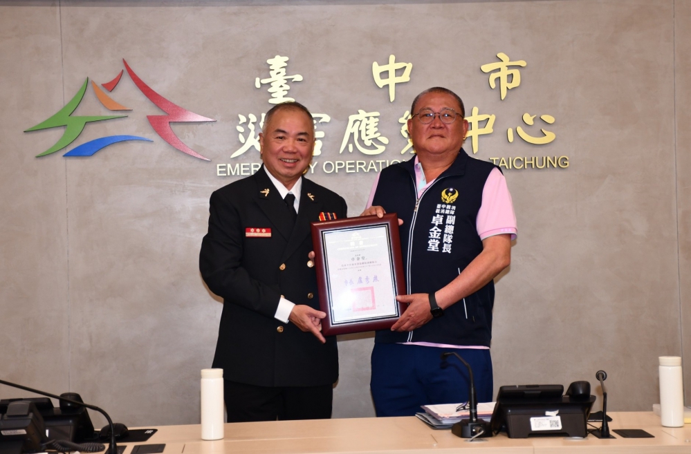 (特派員陳明/臺中報導)台中市義勇消防人員長期投入第一線救災救護與防火宣導,無論重大災害或日常勤務,都是守護城市安全的重要力量。為進一步強化義消組織運作與領導效能,台中市政府消防局於今(25)日主管會報中,由局長孫福佑代表市長盧秀燕頒發「本市義勇消防總隊副總隊長及各大隊長聘書」,透過健全幹部體系與精進指揮機制,全面提升防救災應變能量,攜手打造更具韌性的安全城市。