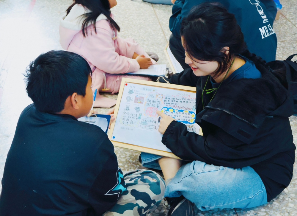 隊員王慈雲說,從陌生到相熟,點點滴滴都值得再三回味,尤其每次活動接近尾聲時,團隊都會安排一段彼此分享的時刻,每位夥伴會透過小卡片與口述,說出自己最難忘的事,並向彼此表達感謝。王慈雲表示,陪伴過程飽嚐酸甜苦辣,但有時候只是孩子的一個擁抱、一句「謝謝哥哥姐姐」,不僅療癒服務過程中的挫折與疲憊,也讓大家重新回味一路走來的感動與收穫。