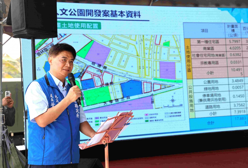 縣長張麗善表示,斗六市人文公園區段徵收計畫自112年9月27日內政部土地徵收審議小組第274次會議審議准予區段徵收後,縣府正依計畫期程積極推動辦理。
