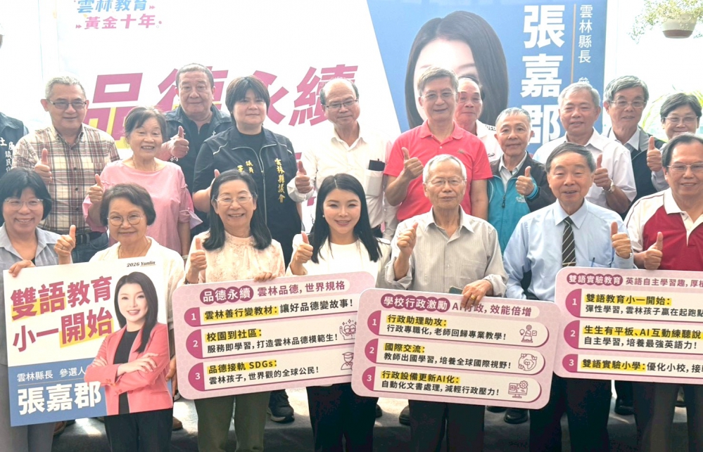 【記者陳信利/雲林報導】雲林縣長參選人張嘉郡今天(30日)發表首波教育政見,以「品德永續、國際視野」為核心主軸,強調將品德教育轉化為具體行動,從國小一年級即導入雙語課程,並結合雙語教學與AI科技應用,培養具倫理素養與全球移動能力的「世界公民」。