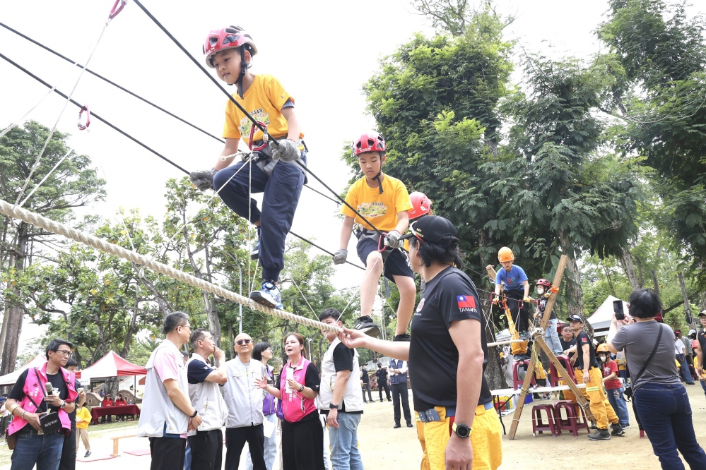 將「兒童權利、反毒打詐、防災安全、閱讀文化、母語學習與醫療保健」等重要課題,轉化為具情境感的森林闖關體驗。