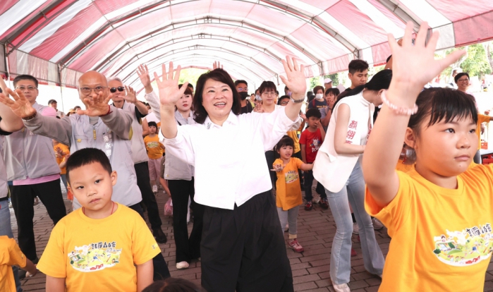 市長黃敏惠出席活動,與大大小小、共計330組的家庭齊做操,緊接著投入充滿刺激與趣味的闖關與尋寶活動。