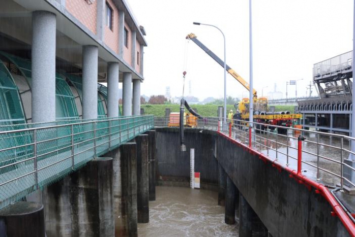 今日上午4點多永貞抽水站啟動第一台抽水機組,4點半啟動4台全力抽水,但時雨量超過60毫米,承受不住瞬間暴雨,即使即時發會效用但效率仍顯不足,縣長鍾東錦表示,今日感謝內政部長劉世芳提點掌握災害情資以外,另感謝國土署長蔡長展答應補助增設2組機組,屆時直接將水排入中港溪,未來竹南、頭份地區淹水機率將更低。